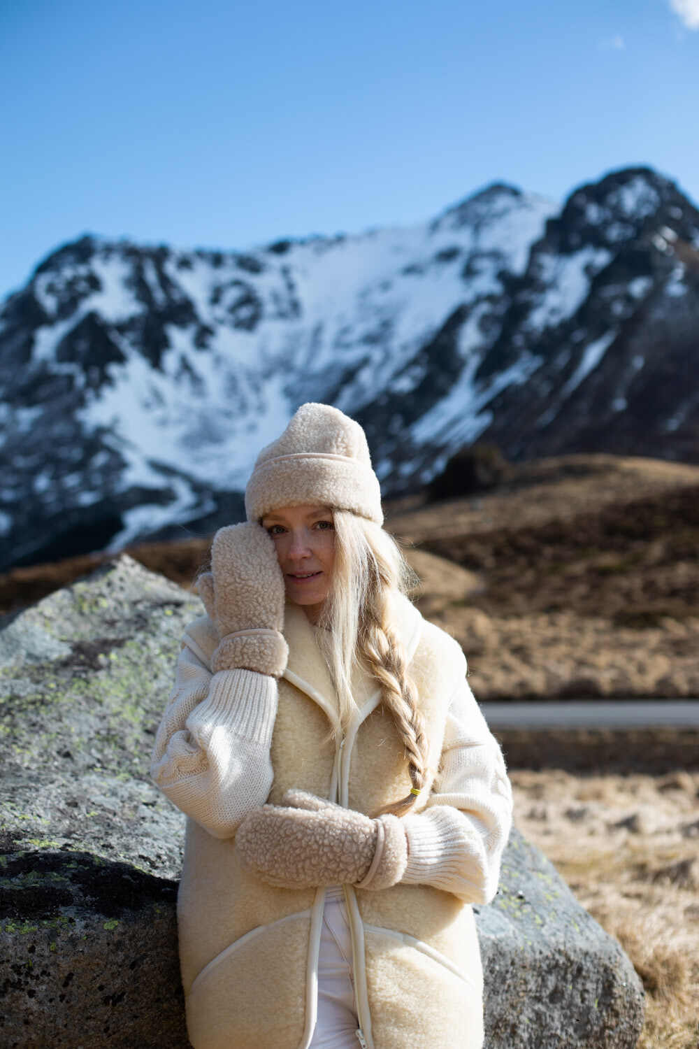 Combineer de muts met onze bijpassende wollen wanten in dezelfde kleur voor een stijlvolle en complete winterlook.