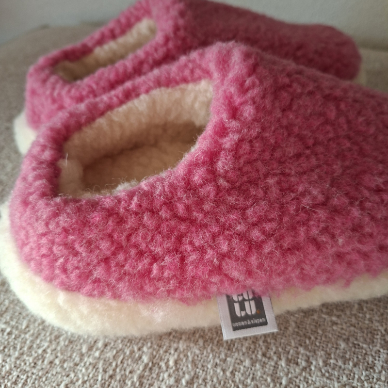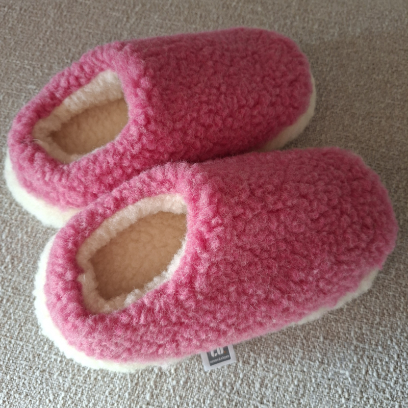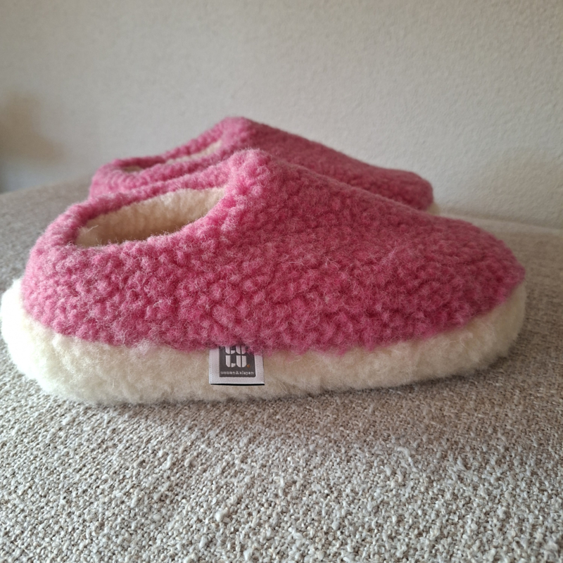 Nordic Sloffen - Knalroze - 100 % Schapenwol | Antislipzool